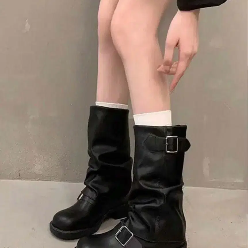 버클 달린 블랙 부츠