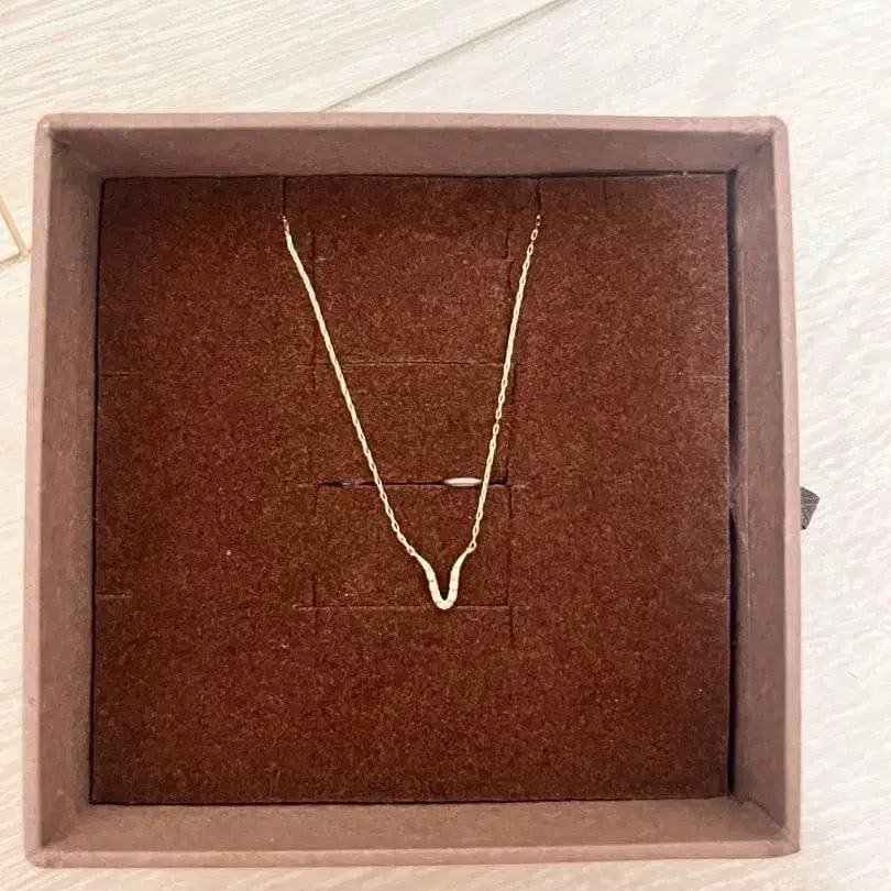 골드 V자형 디자인 목걸이, 전용 박스 포함. - 브랜드: ete - 소재: 골드 - 디자인: V자형 목걸이 - 부속품: 전용 박스 방문해 주셔서 감사합니다. 에테 비쥬의 목걸이입니다. 반년 정도 착용했습니다. 작년 여름에 구매했습니다. 정가는 5만 정도였던 것 같습니다. 인증서는 없습니다. 들어있던 상자와 봉투?는 있습니다. 쇼핑백은 없습니다.