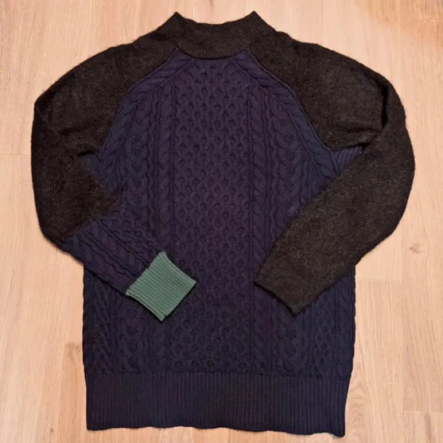 [ 레어 ] sacai 케이블 모헤어라이크 절개 니트 스웨터 사이즈 1 어깨 너비 44 cm 가슴 너비 54 cm 기장 74 cm 소매 길이 57 cm 컬러 네이비 블랙 그린 소재 울 86% 나일론 9% 폴리에스테르 5% sacai 특유의 절개 디자인이 돋보이는 니트 스웨터입니다. 케이블 니트와 모헤어라이크 니트의 도킹 디자인으로 좀처럼 보기 힘든 디자인입니다.