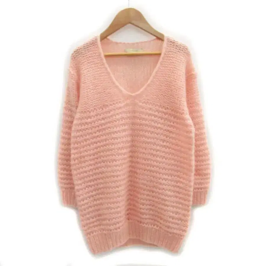 부드러운 핑크 V넥 모헤어 니트