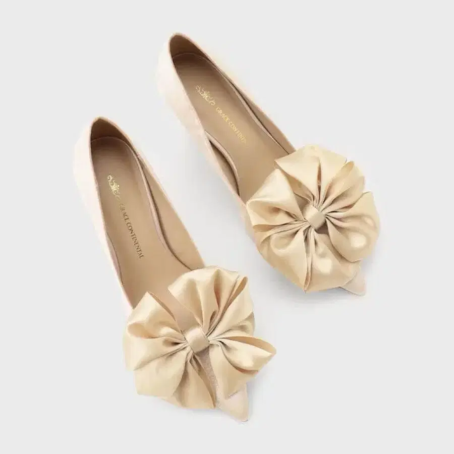 볼륨감 있는 리본을 대담하게 장식하여 화려하고 럭셔리하게 완성한 한 켤레입니다.