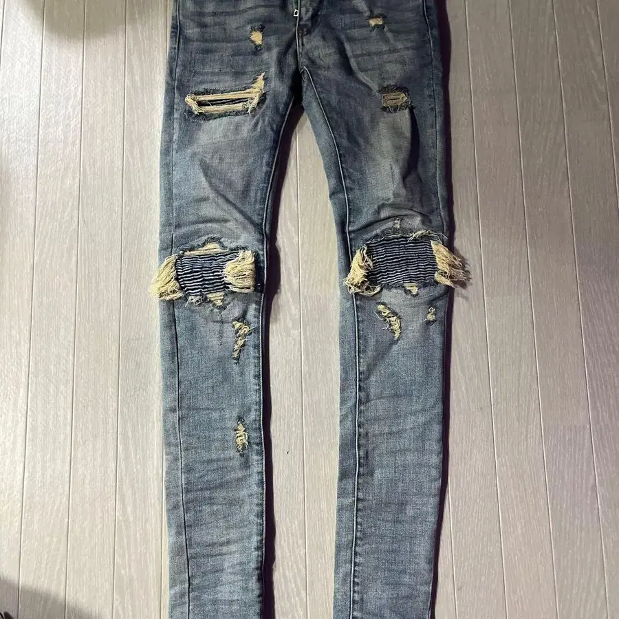 데미지 가공 블루 데님 팬츠