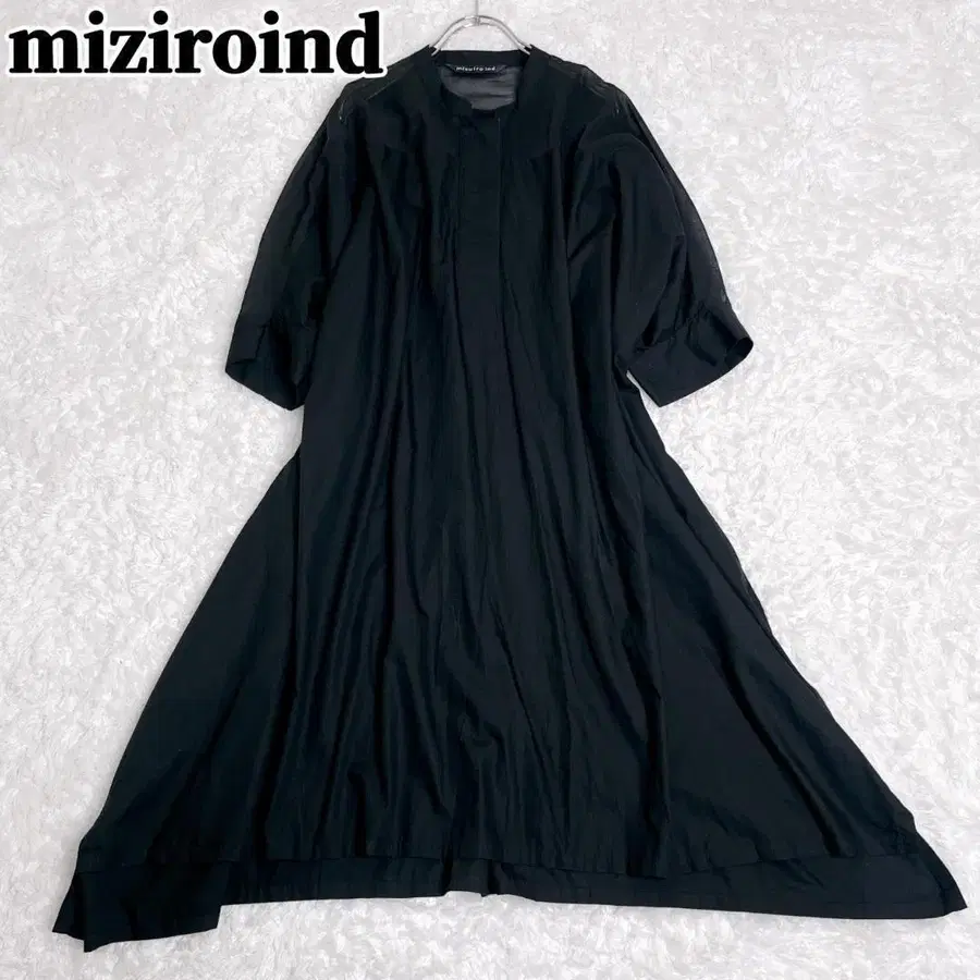 롱 원피스 드롭 슬리브 최근 모델 코튼 면직물 스탠드 카라 시어 와이드 원피스