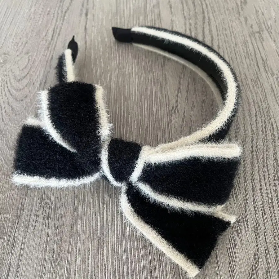 블랙 베이스에 화이트 파이핑 디자인의 리본 머리띠. - 색상: 블랙 베이스에 화이트 파이핑 - 디자인: 리본 머리띠