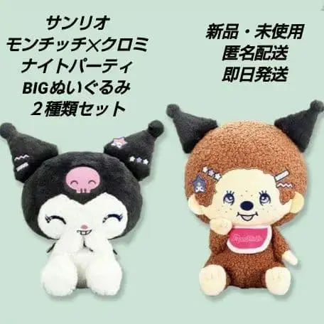 산리오 몬치치 ✖ 쿠로미 나이트 파티 BIG 봉제 인형 2종류 세트 몬치치 약 28cm 쿠로미 약 25cm 새상품, 미사용, 택 포함 즉시 구매 대환영입니다. 잘 부탁드립니다.
