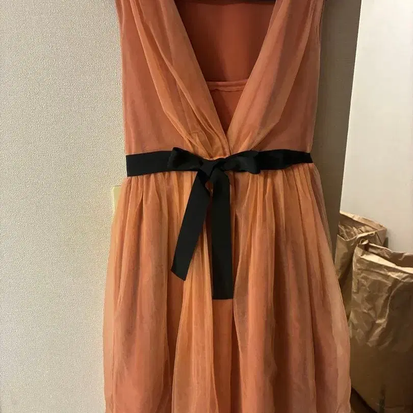 슬리브리스 V넥 디자인에 허리에 리본이 달린 튤 소재의 무릎 기장 원피스. - 색상: 핑크 - 디자인: 슬리브리스, V넥, 허리 리본 - 소재: 튤 노브랜드 방문해 주셔서 감사합니다.