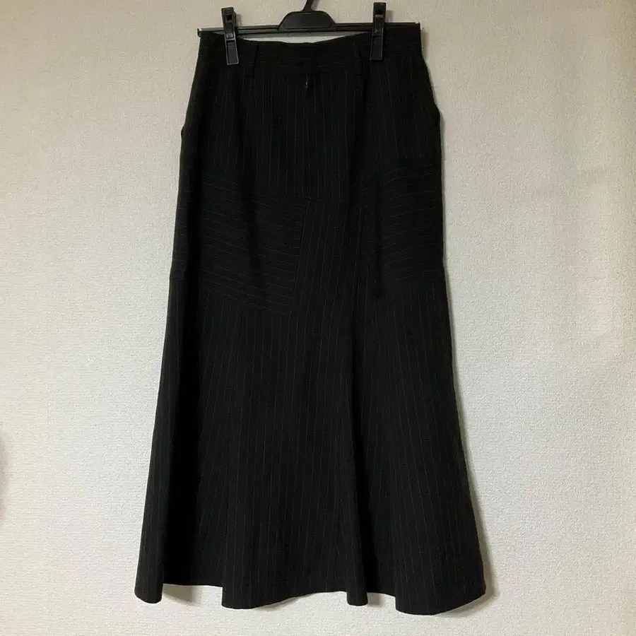 스트라이프 패턴 플레어 롱 스커트 블랙 핀스트라이프 덧댄 리메이크