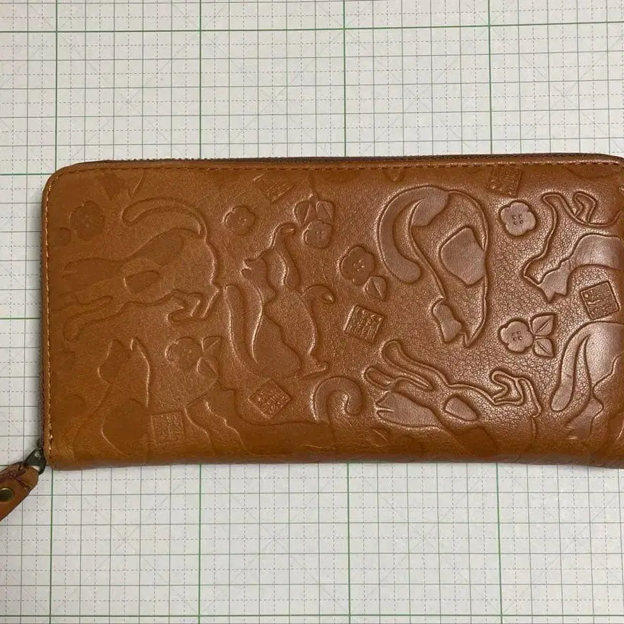 노무라 슈헤이 라운드 지퍼 장지갑 고양이 엠보 가죽 브라운