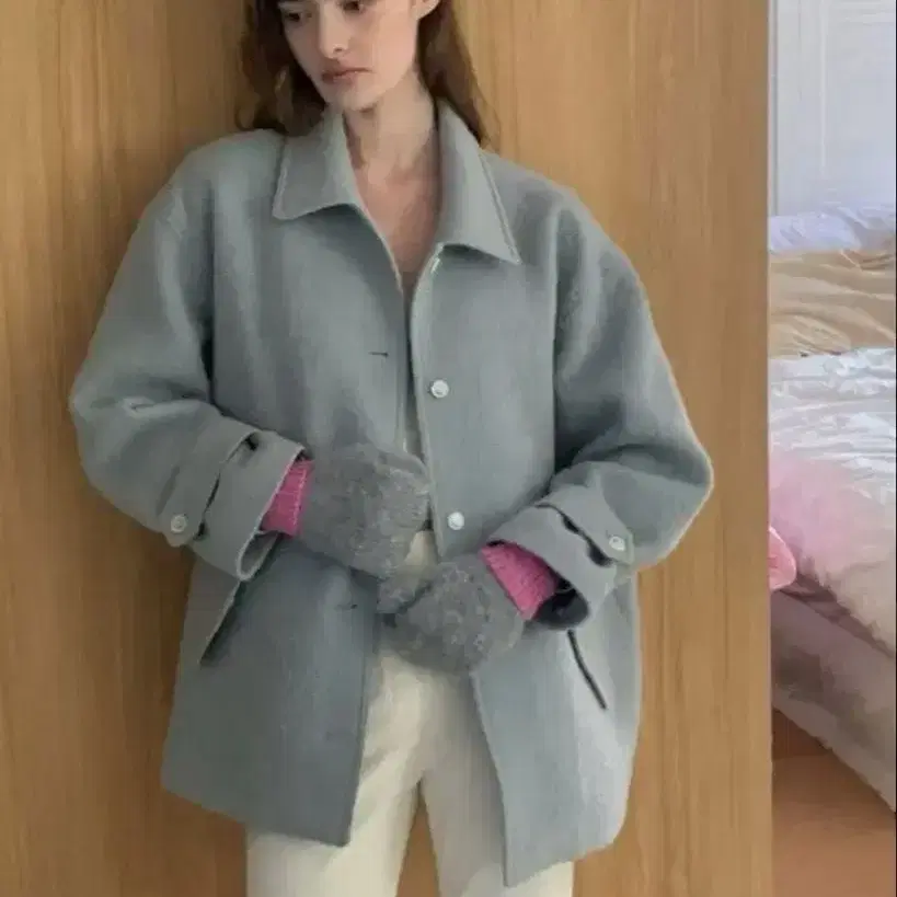 울 코트 핸드메이드 코트 허리 타이 자켓 코트 한국 하프