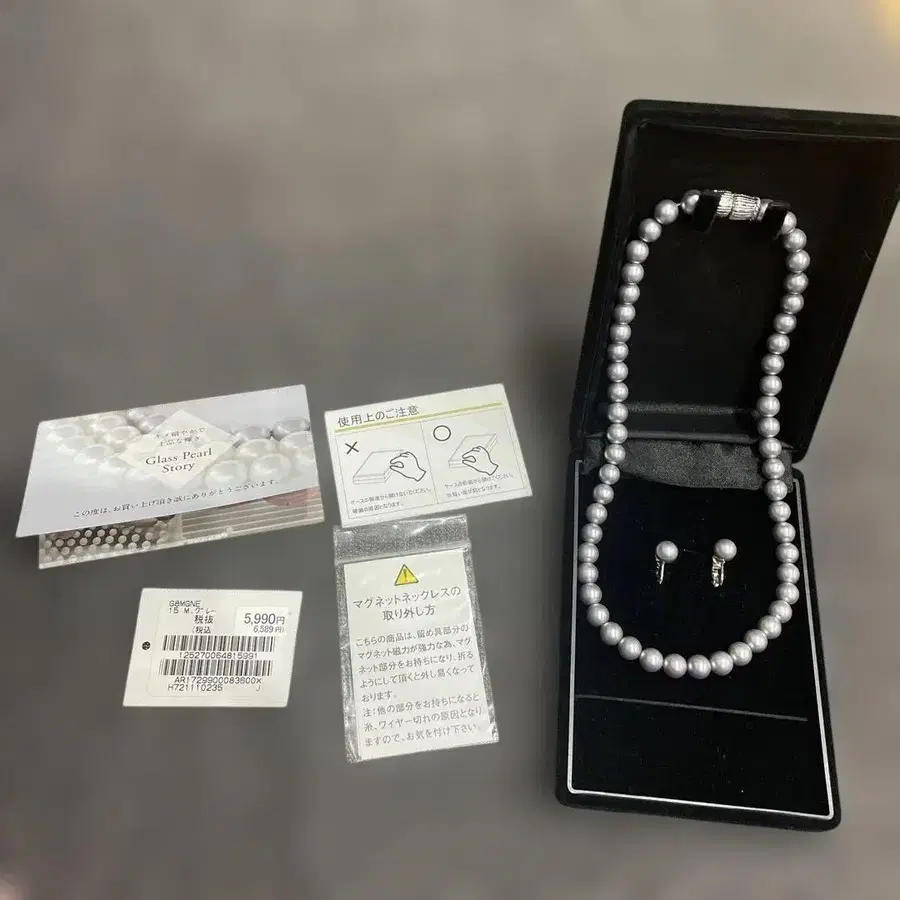 그레이 계열 진주 목걸이, 귀찌 케이스 포함 1