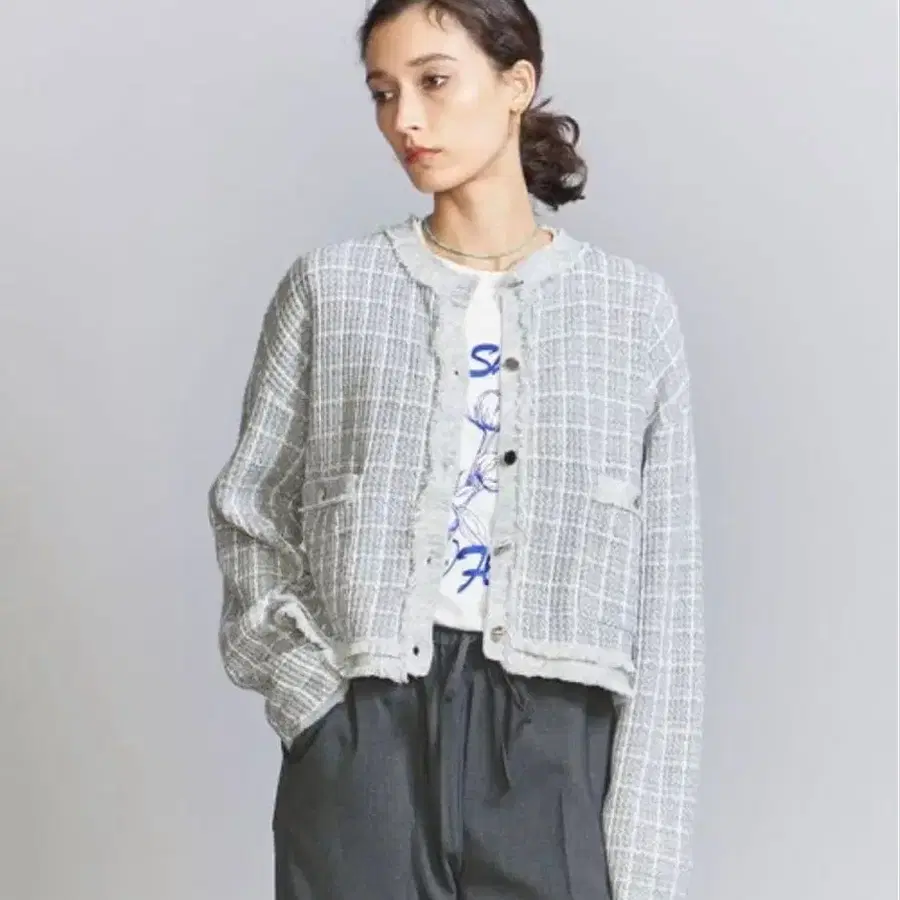 유나이티드 애로우즈 [ 미사용품 택 포함 ] 코튼 트위드 니트 가디건