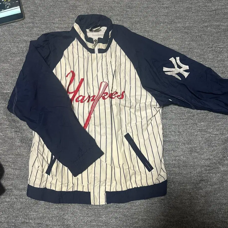 스트라이프 디자인의 Yankees 나일론 자켓, XL 사이즈. 기장: 68cm 어깨 너비: 50cm 가슴 너비: 60cm 소매 길이: 72cm - 브랜드: Yankees - 색상: 네이비/화이트 - 디자인: 스트라이프 - 사이즈: XL - 소재: 나일론 방문해 주셔서 감사합니다. 사이즈 - XL(LL)