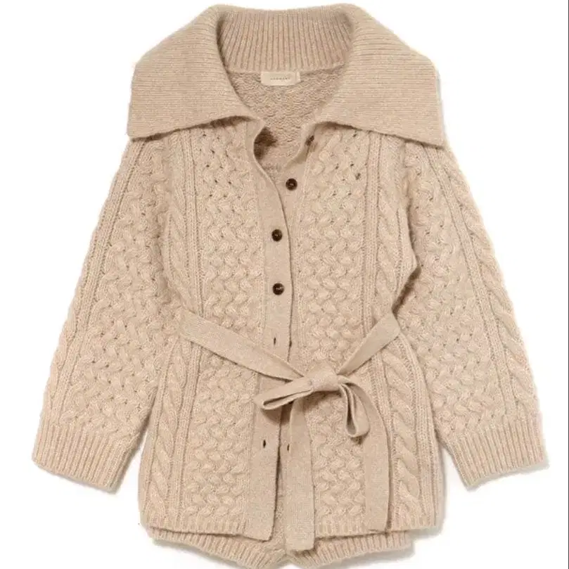 케이블 니트 디자인의 베이지 가디건, 허리 리본 포함으로 스타일리시. - 색상: 베이지 - 디자인: 케이블 니트, 버튼 포함, 허리 리본 - 스타일: 오프숄더, 캐주얼 - 소재: 니트 - 특징: 빅 옷깃, 긴팔 방문해 주셔서 감사합니다.