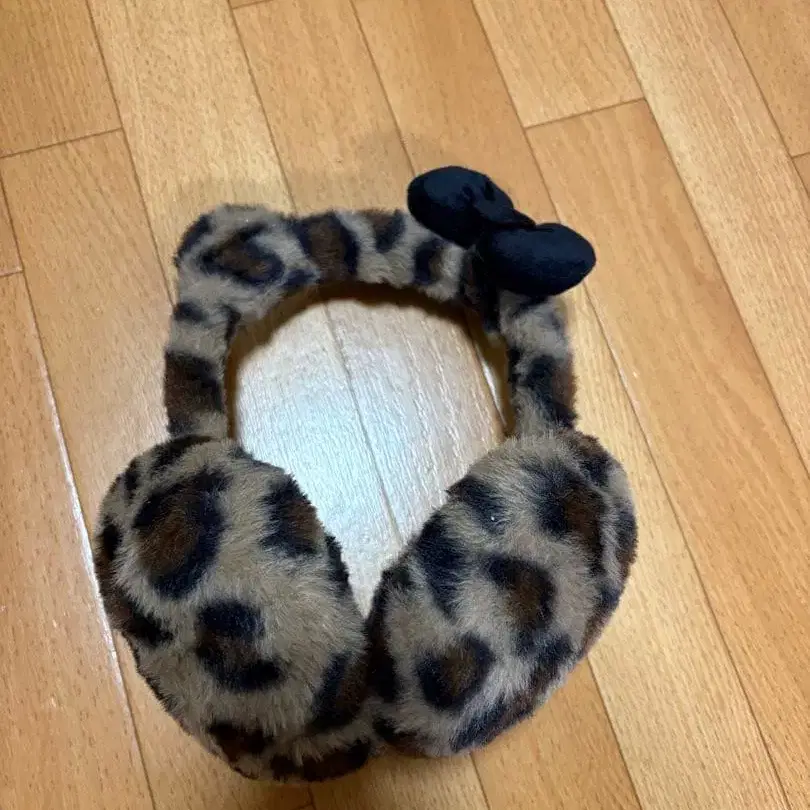 키티 레오파드 무늬 퍼 귀도리 이어머프