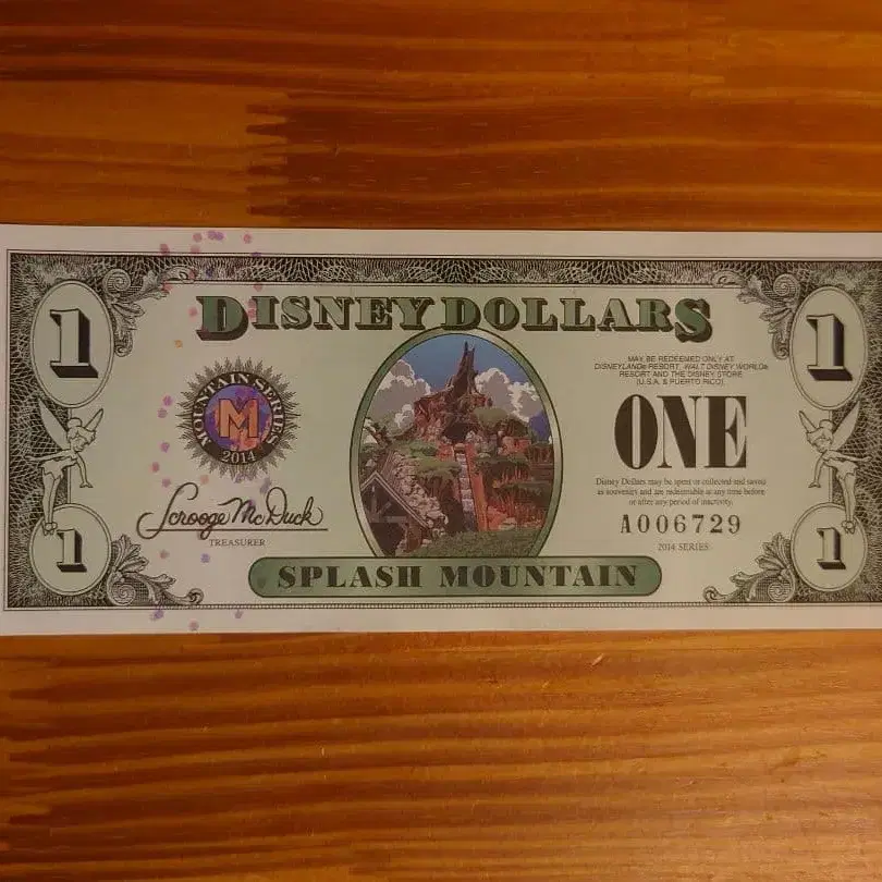 ■ 디즈니 달러/디즈니 돌 ■ 1달러 ■ 스플래쉬 마운틴/미키마우스 ■ 2014년 해외 디즈니에서 발행되었던 파크 내 한정판 지폐입니다. 컬렉션 정리를 위해 판매합니다. 비흡연, 반려동물 없음. [ 상태 ] 접힌 부분 - 없음 얼룩 - 없음 주름 - 없음