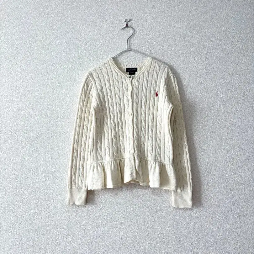 랄프 로렌 페플럼 가디건 케이블 짜임 화이트 150