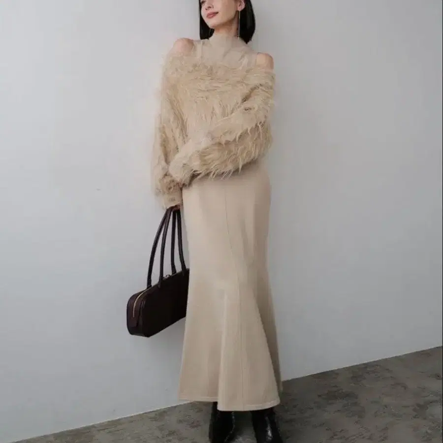 퍼 느낌 니트 오프숄더 롱 원피스, 플레어 실루엣으로 엘레강트. - 색상: 베이지 - 스타일: 슬리브리스 - 소재: 퍼 느낌 니트 - 디자인: 오프숄더 - 실루엣: 플레어 방문해 주셔서 감사합니다. 사이즈 - FREE SIZE 사이즈 - S