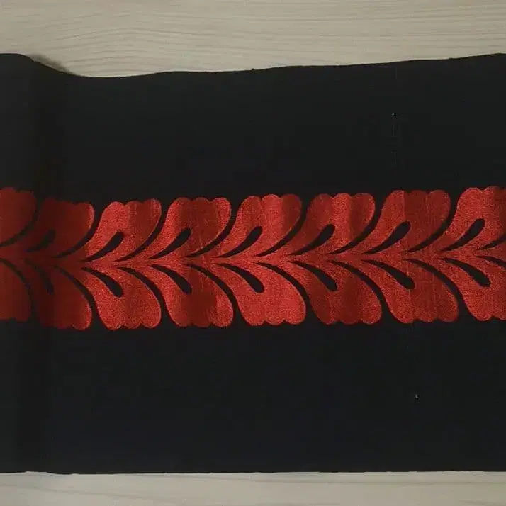 블랙 베이스에 빨간색 잎사귀 디자인 자수가 들어간 오비. - 색상: 블랙과 레드 디자인 - 디자인: 블랙 베이스에 레드 자수 - 스타일: 오비 - 리메이크용 원단 자세한 내용은 알 수 없으나 오래된 물건입니다. 장기 자택 보관품임을 이해하신 후 검토 부탁드립니다.