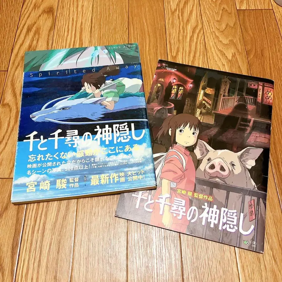 영화 [센과 치히로의 행방불명]의 상세 해설과 캐릭터 소개가 풍부한 팜플렛. 센과 치히로의 행방불명 로망 앨범 초판 - 타이틀: 센과 치히로의 행방불명 - 저자: 미야자키 하야오 - 내용: 영화의 장면 및 캐릭터 해설 2권 세트입니다.