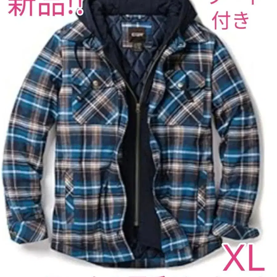 미사용 새상품 플란넬 자켓 후드 부착 XL 두꺼운 원단 (보온 방한)