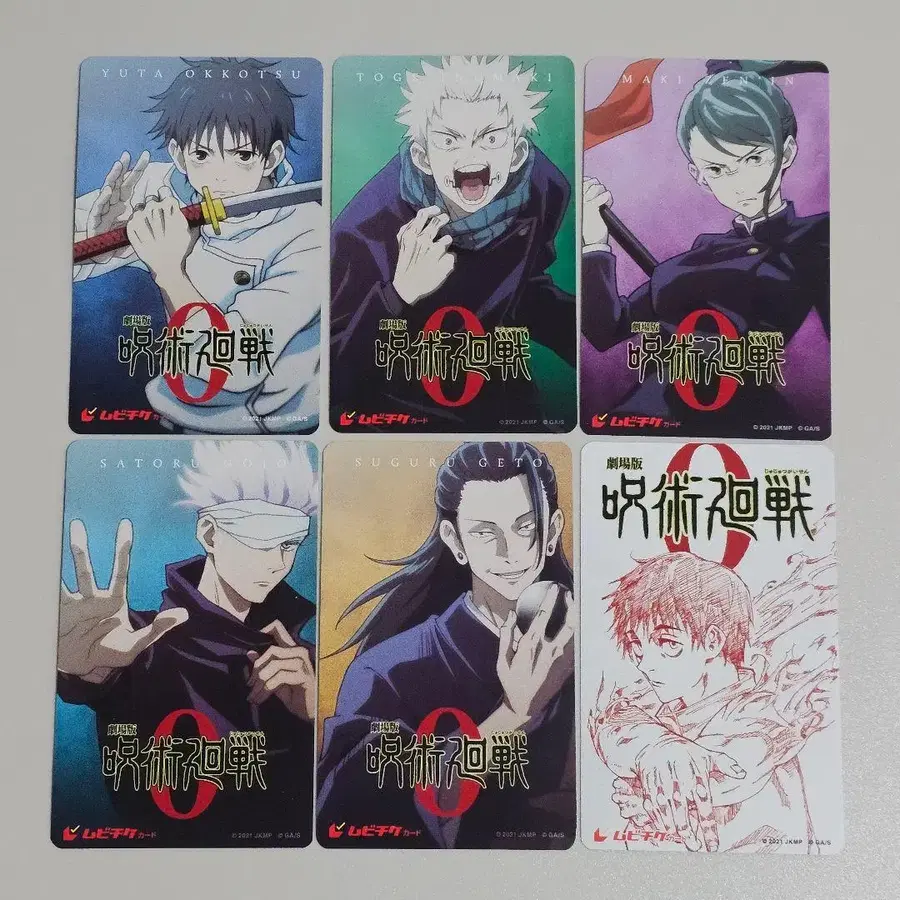 애니메이션 극장판 주술회전 0 무비티켓 6장 세트 (사용 완료) 옷코츠 유타 이누마키 토게 젠인 마키 고죠 사토루 게토 스구루 새롭게 그린 원작 패턴 키 비주얼 사용 완료된 상품이므로 컬렉션 용도로 추천합니다. 즉시 구매 가능