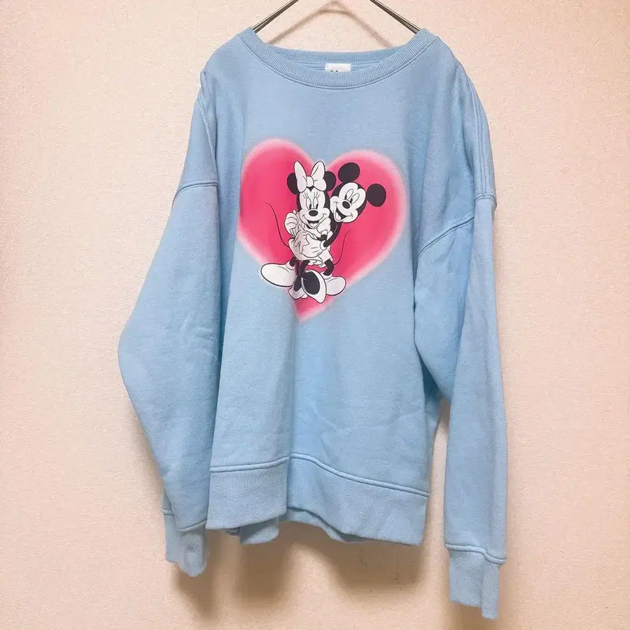 미키와 미니의 귀여운 프린트가 들어간 라이트 블루 색상의 크루넥 트레이닝복.