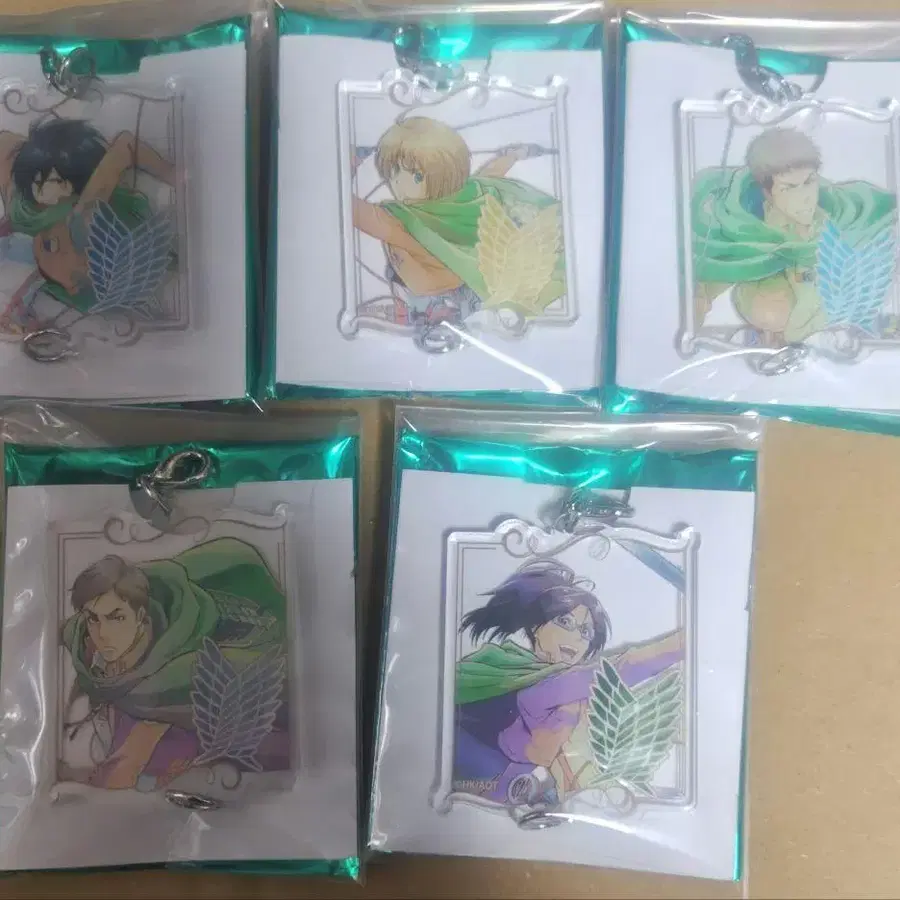 진격의 거인 더 캐릭터 PALETONE 시리즈 이어지는 아크릴 키링 미카사 1개 아르민 1개 장 1개 엘빈 1개 한지 1개 5개 세트입니다(낱개 판매 불가)