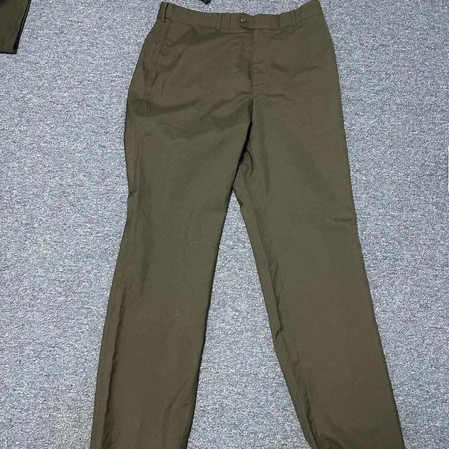 올리브 컬러의 심플한 슬랙스. - 브랜드: STAFFORD - 컬러: 블랙 - 스타일: 슬랙스 - 디자인: 심플한 디자인 방문해 주셔서 감사합니다. 컬러 - 블랙 계열 실루엣 - 스트레이트 얼룩, 찢김, 냄새 등 - 없음