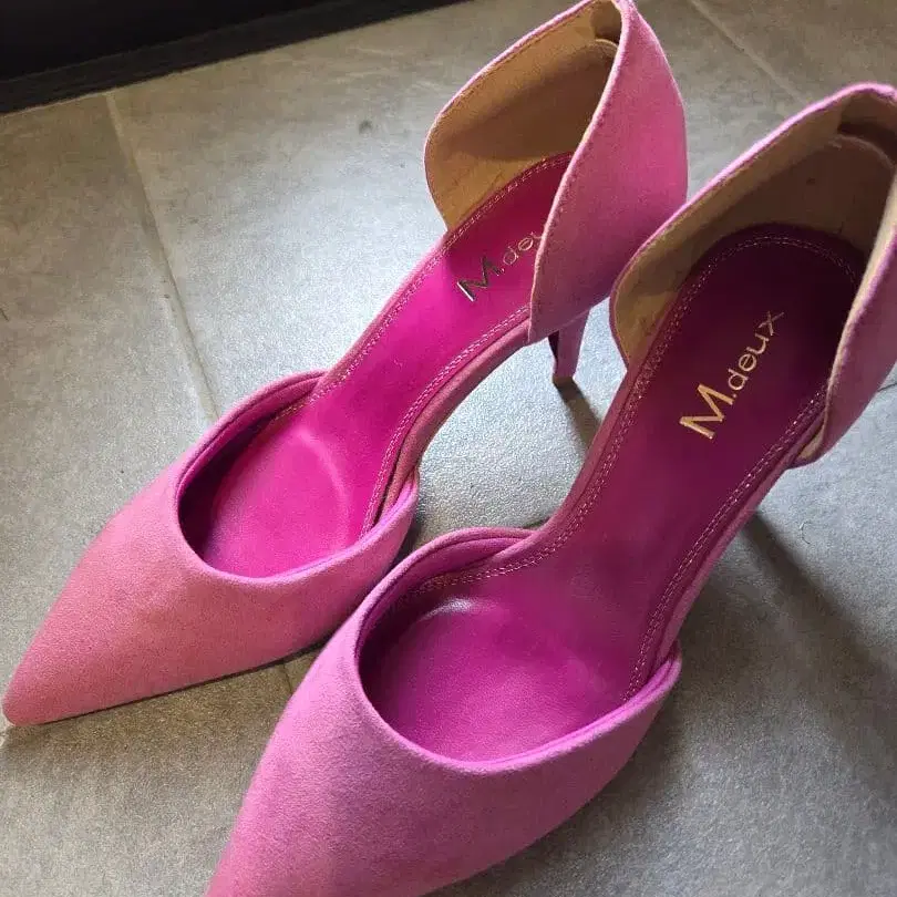 엠듀의 스웨이드 소재 핑크 펌프스입니다. 미사용 상태로, 상자에 넣어 신발장에 보관 중입니다. - 브랜드: M.deux - 색상: 핑크 - 소재: 스웨이드 - 굽 높이: 8.5cm, 발둘레 7cm 방문해 주셔서 감사합니다.