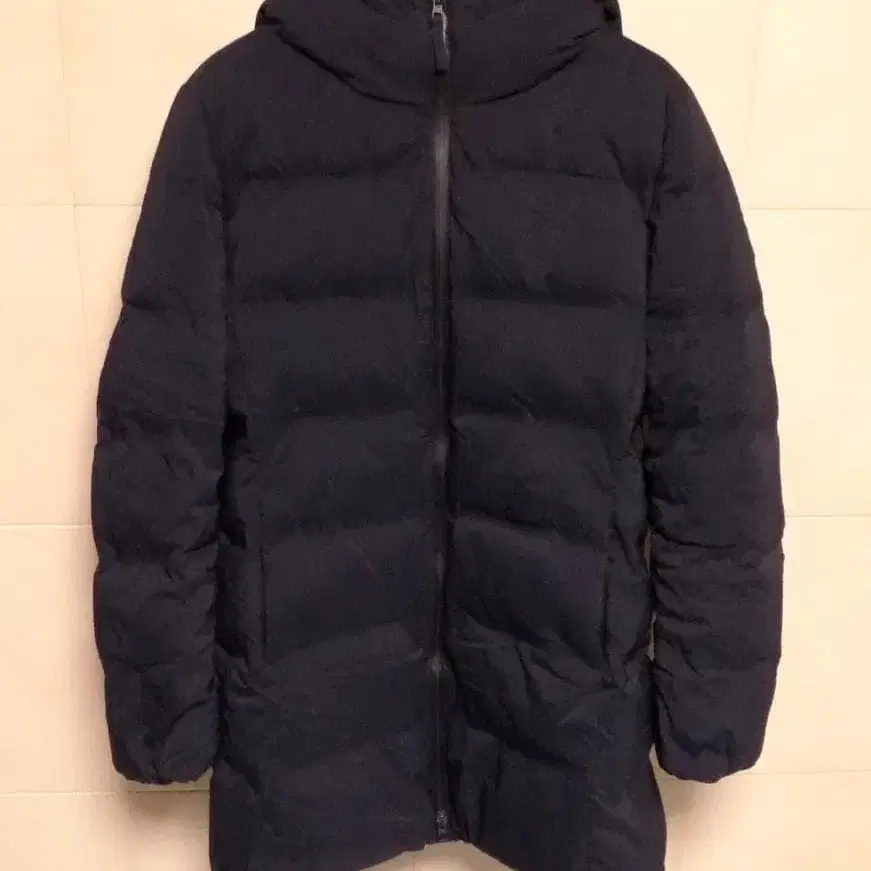 자동 번역되었어요. 원문보기네이비 색상의 심리스 다운 코트입니다.
