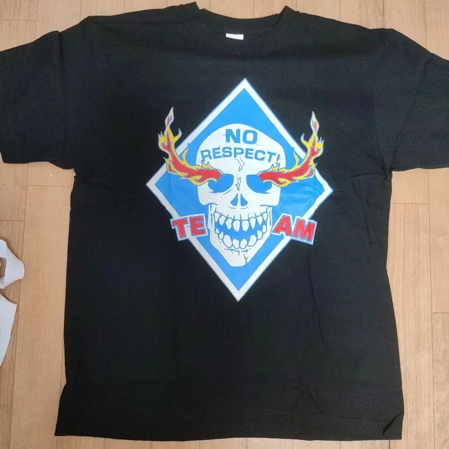 스컬과 불꽃의 그래픽이 특징인 XL 사이즈의 화이트 T셔츠. 프로레슬링 굿즈 새상품급