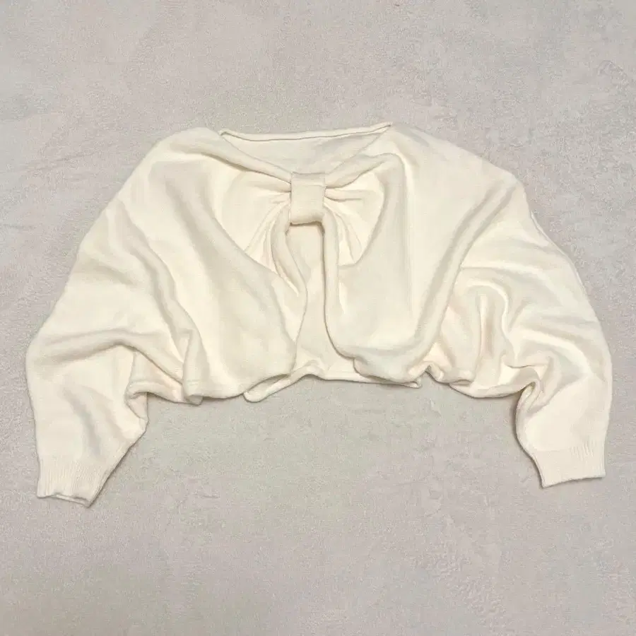 mily bilet 프론트 리본 니트 스웨터 걸리시 짧은 기장 미색 M