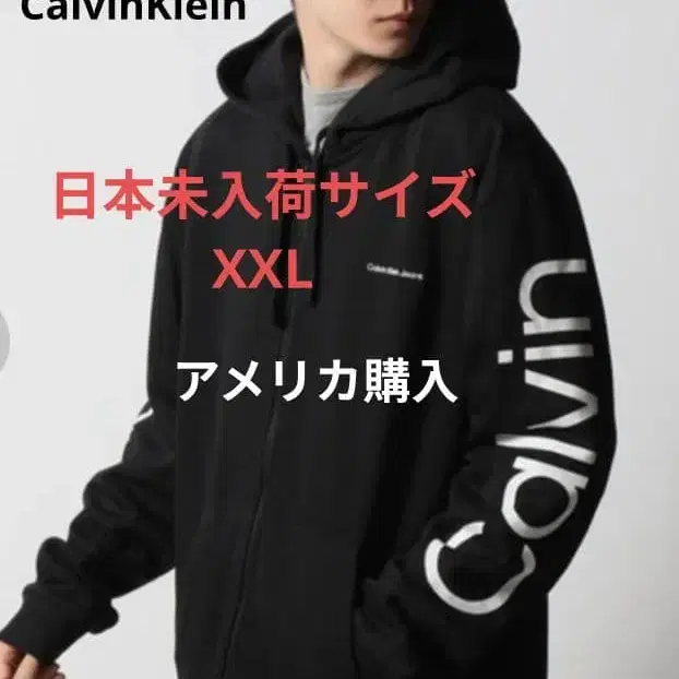 CalvinKlein 속기모 풀 집업 블랙 후드티, 로고 프린트가 특징입니다.