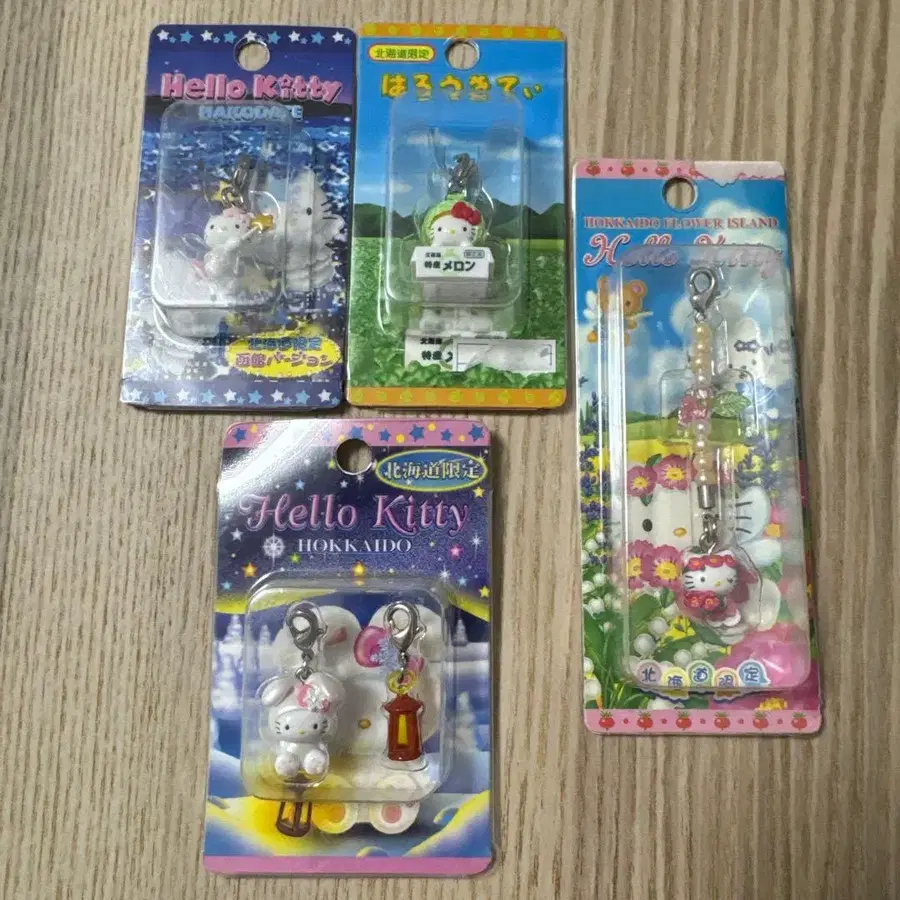 봐주셔서 감사합니다. 지역 한정 키티, 홋카이도 한정, 지퍼 마스코트 4개 세트입니다. 플라워 아일랜드, 멜론, 눈 토끼, 하코다테 버전 4개입니다. 약 20년 전에 수집했던 물건입니다.