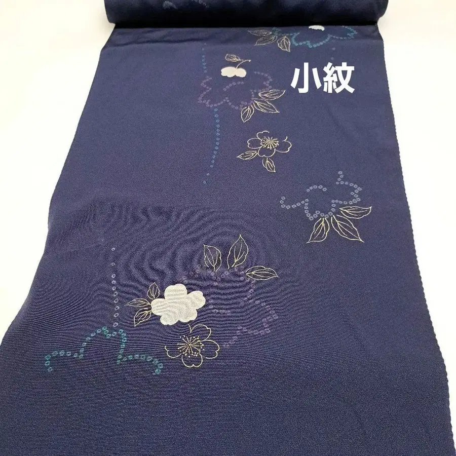 소재 순수 실크 길이 12m 폭 38cm 손으로 그린 네이비색에 가까운 바탕색에 벚꽃 무늬가 그려진 코몬입니다. #벚꽃기모노유카타옷감