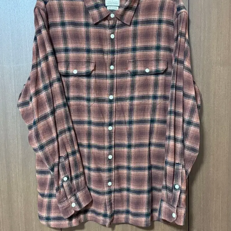 오렌지 계열 체크 패턴의 릴랙스 핏 플란넬 셔츠.