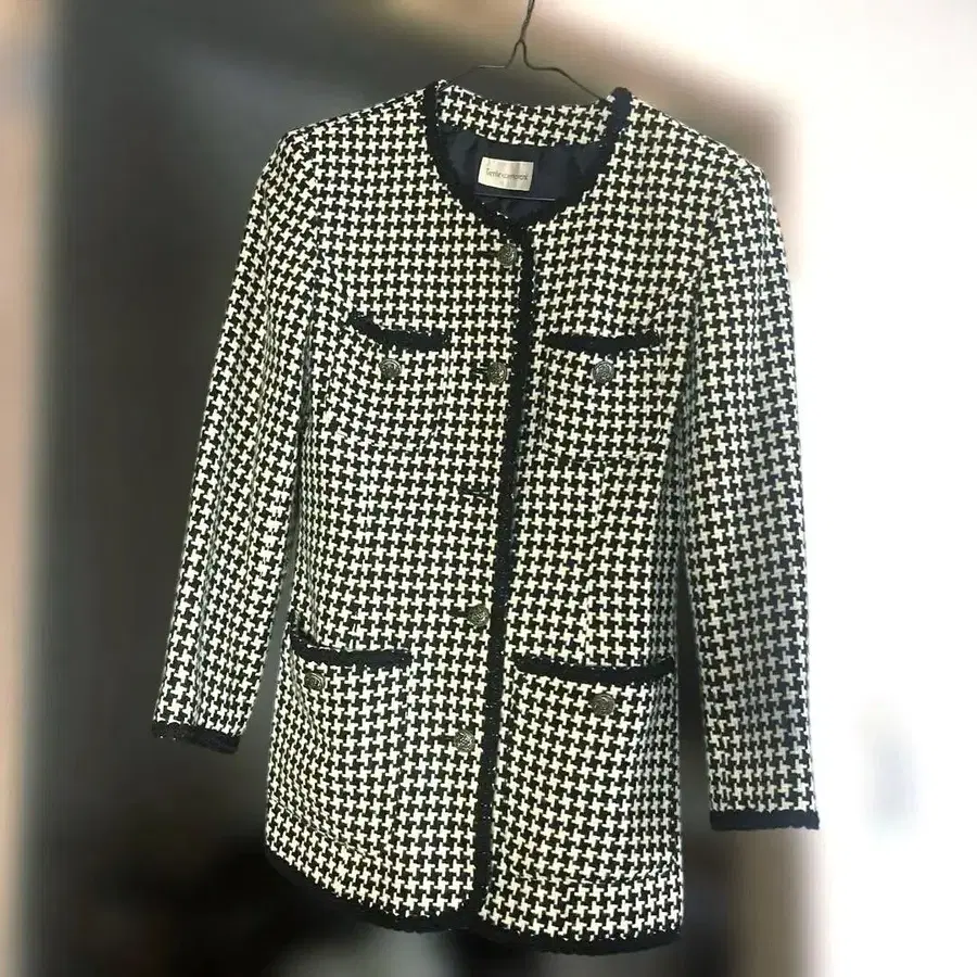 노카라 트위드 자켓 블랙 화이트 체크