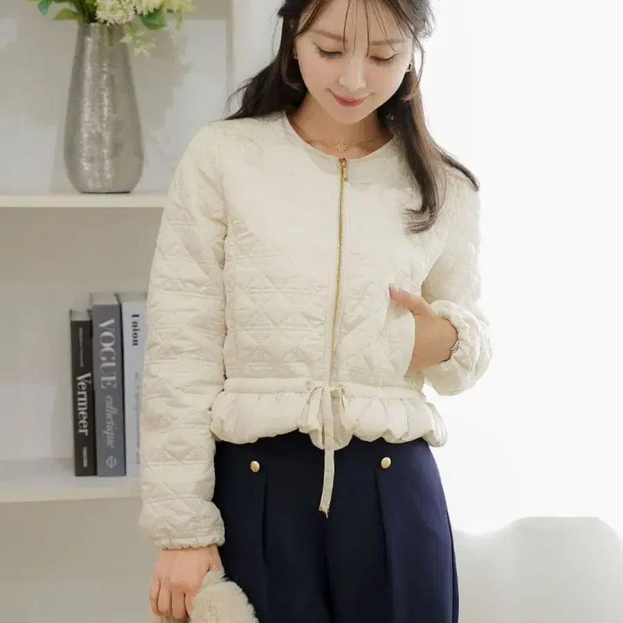 2회 정도 착용한 것 외에는 깨끗한 상태입니다. 이미지를 잘 확인하시고 구매 부탁드립니다. 아이보리 색상의 퀼팅 자켓으로, 지퍼와 허리 리본이 특징입니다. - 브랜드: Vaniller - 색상: 아이보리 - 디자인: 퀼팅 - 스타일: 지퍼 포함 - 특징: 허리 리본 포함 방문해 주셔서 감사합니다.