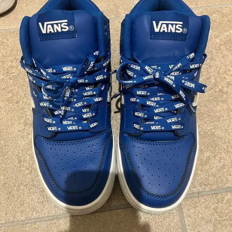 VANS의 파란색 하이컷 스니커즈, 가죽 소재로 스타일리시한 디자인. - 브랜드: VANS - 색상: 파랑 - 디자인: 하이컷 - 소재: 가죽 - 로고: VANS 로고 슈레이스 방문해 주셔서 감사합니다.
