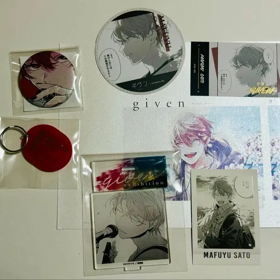 기븐 기븐전 애니카페 아크릴 스탠드 캔뱃지 금박 카드 마후유 등 세트