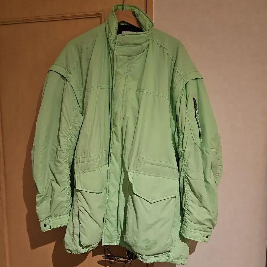 라이트 그린 색상의 나일론 자켓, 프론트 포켓 부착. - 브랜드: MAISON SPECIAL - 색상: 라이트 그린 - 스타일: 나일론 자켓 - 포켓: 프론트 포켓 있음 방문해 주셔서 감사합니다.