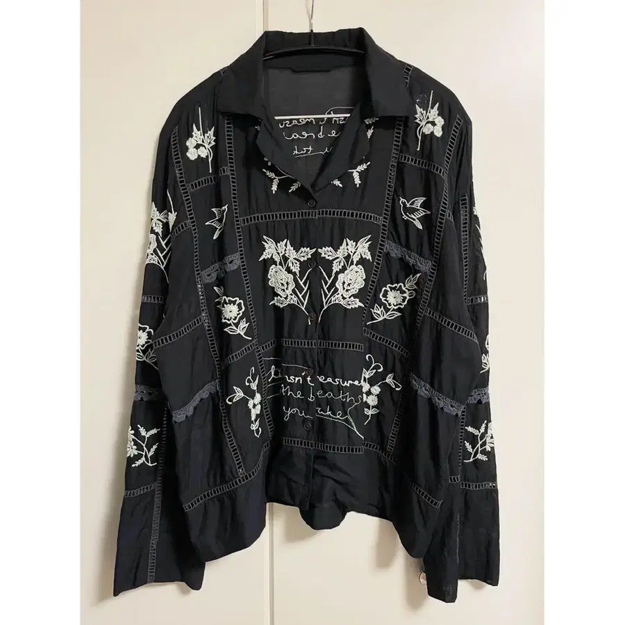 TODAYFUL Embroidery Patchwork Shirts 컬러: 블랙 사이즈: FREE 2회 착용했으며, 특별히 눈에 띄는 얼룩 없이 상태는 양호하다고 생각합니다. 중고 제품이므로, 이해하신 후 구매해 주시기 바랍니다. TODAYFUL 자수 패치워크 셔츠