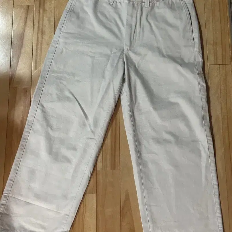 라이트 베이지 스트레이트 레그 치노 팬츠, 코튼 혼합 소재로 쾌적한 착용감.