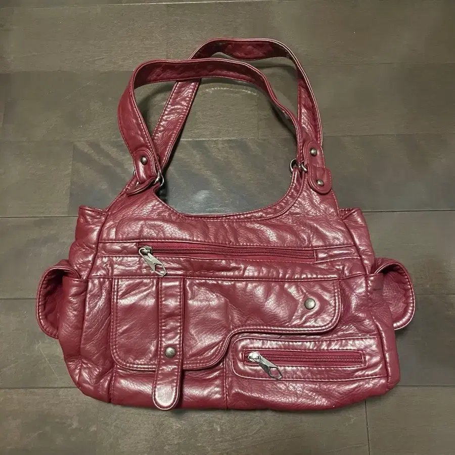 버건디 핸드백, 여러 개의 지퍼 포켓이 있어 수납력이 뛰어납니다. - 색상: 버건디 - 디자인: 여러 개의 지퍼 포켓 부착 - 안쪽 소재: 원단 (그레이) - 손잡이 스타일: 더블 핸들 방문해 주셔서 감사합니다.