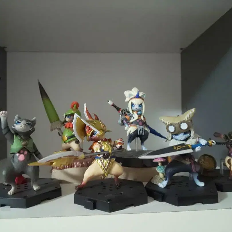 몬스터 헌터 오토모 아이루 피규어 6개 세트 낱개 판매 불가 캡콤 피규어 빌더 제일복권 상품입니다. 흠집이나 얼룩은 없습니다. 이미지에 있는 것이 전부입니다. 이염되지 않도록 나일론에 넣어 포장합니다.
