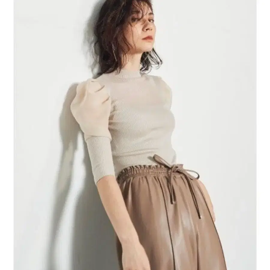 Apuweiser-riche 보타이 볼륨 슬리브 니트 아이보리