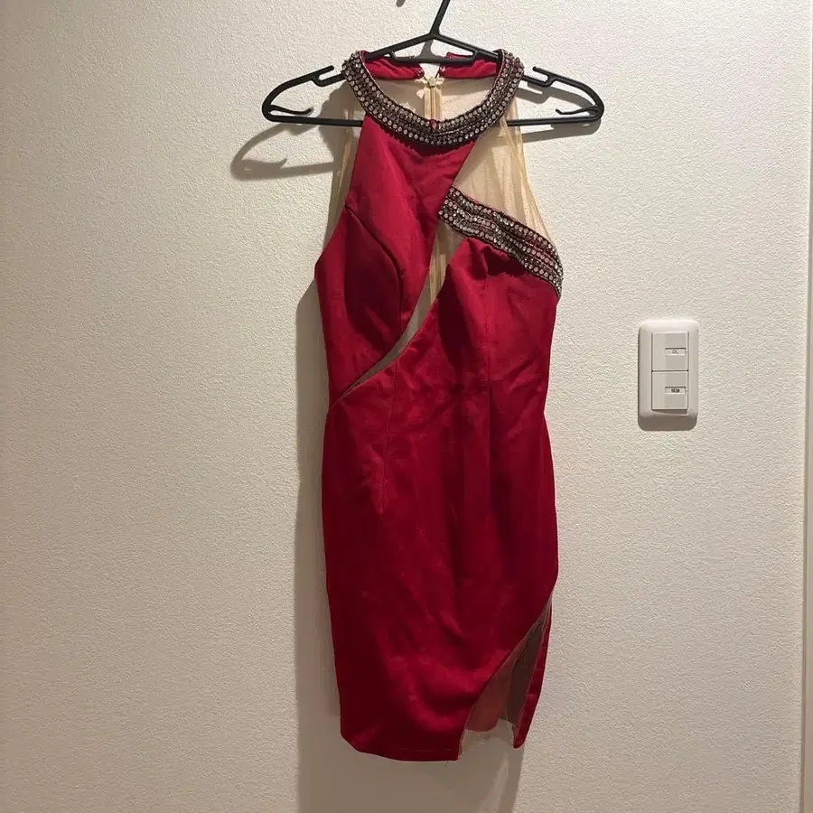 새상품 와인 레드 타이트 드레스 플레어 슬리브