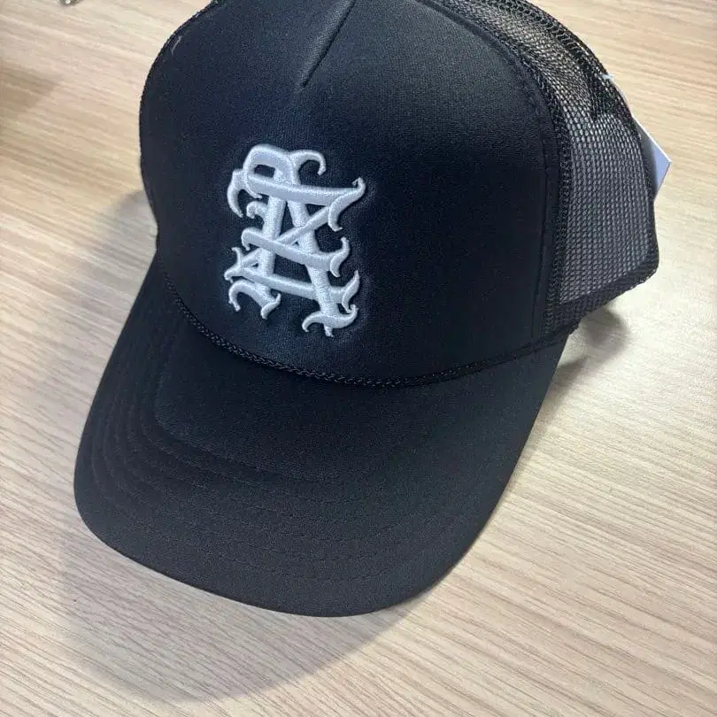 블랙 자수 로고 트래커 캡