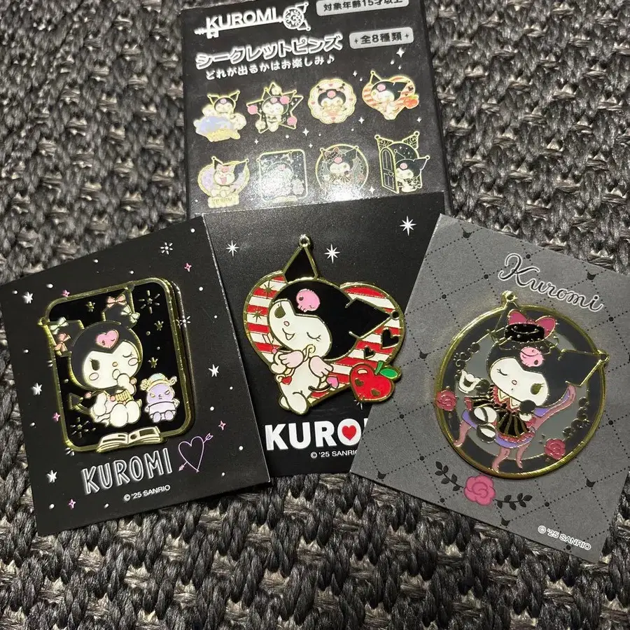 산리오 쿠로미의 귀여운 핀즈 3개 세트, 개성 있는 디자인이 매력적입니다.