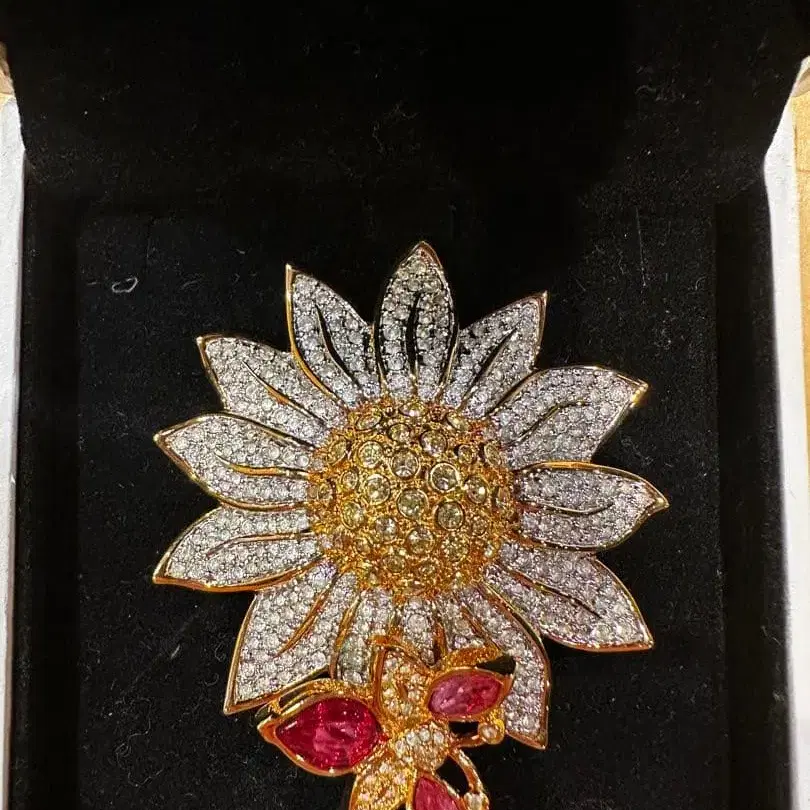 화려한 해바라기 디자인의 SWAROVSKI 브로치, 크리스탈 장식이 아름답습니다.